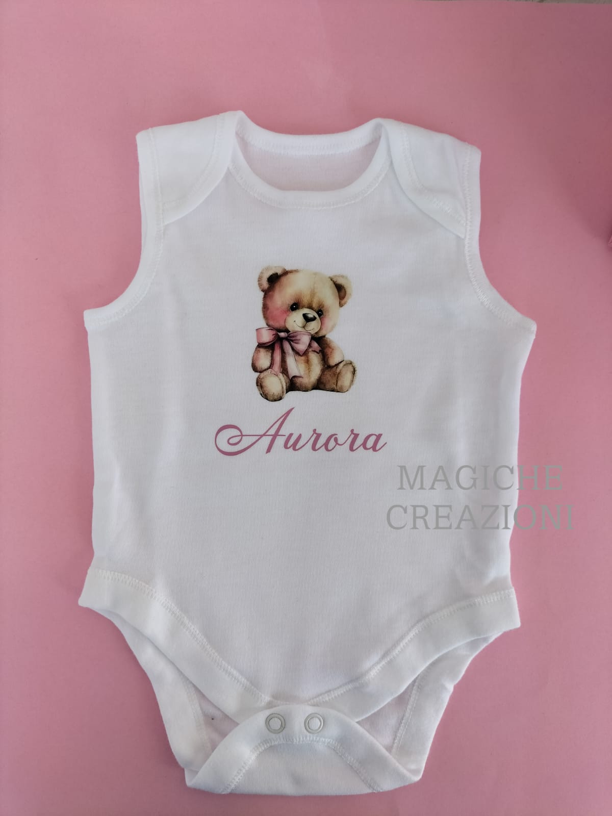 Body in cotone 100%, disponibile a giro manica, manica corta o manica lunga.