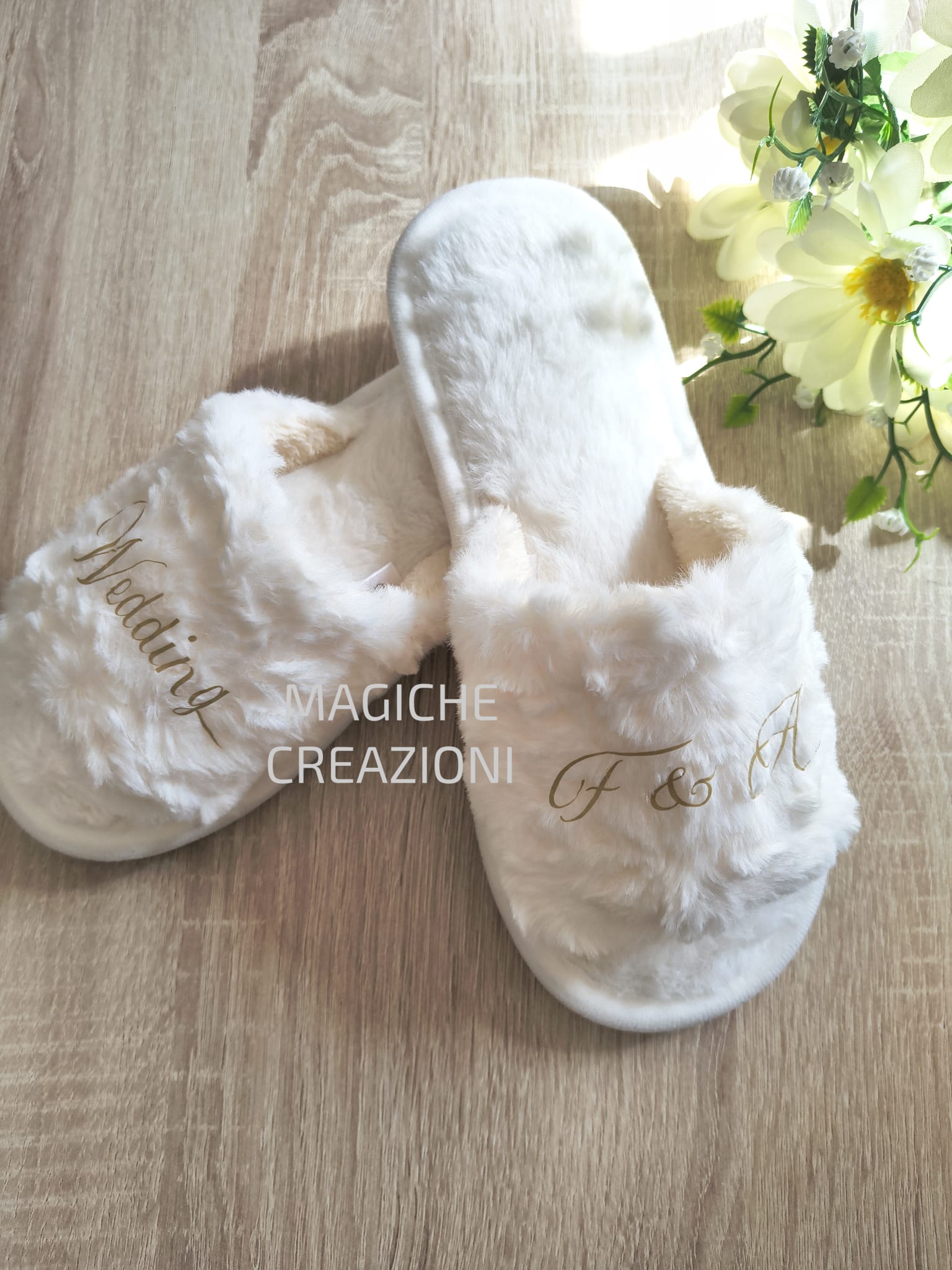 Queste ciabatte da sposa nella colorazione bianco candido, con morbido pelo sintetico, sono l'accessorio perfetto per aggiungere un tocco di eleganza e comfort al tuo giorno speciale. Immagina di prepararti sentendoti come una principessa, avvolta in una nuvola di morbidezza. ✨