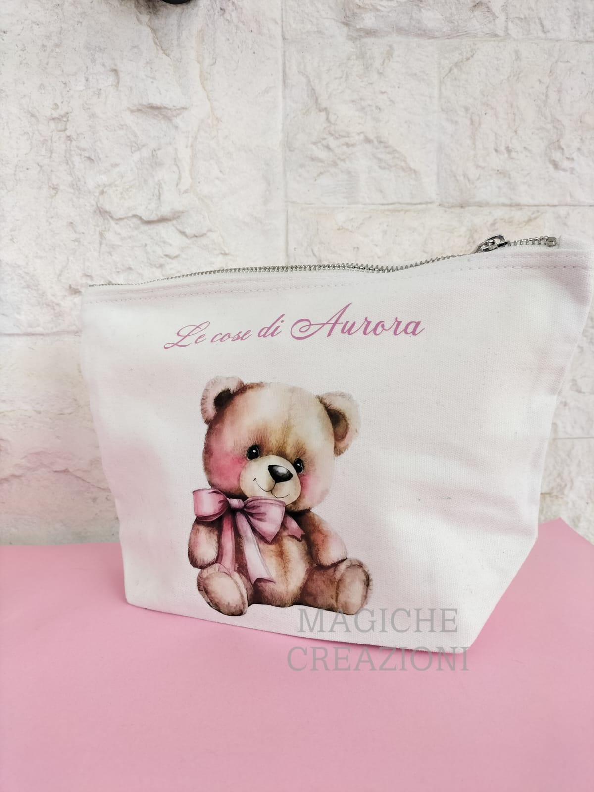 Comodissima pochette in tela di cotone, con robusta chiusura facile con zip in metallo, disponibile in diverse misure: