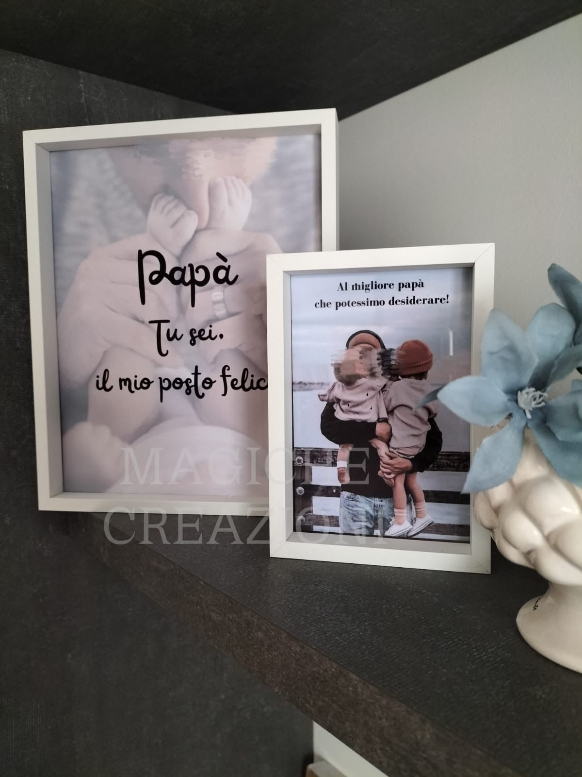 Il quadretto personalizzato, ha un doppio utilizzo: può essere poggiato su un mobile come portafoto , o semplicemente appeso al muro come quadretto.