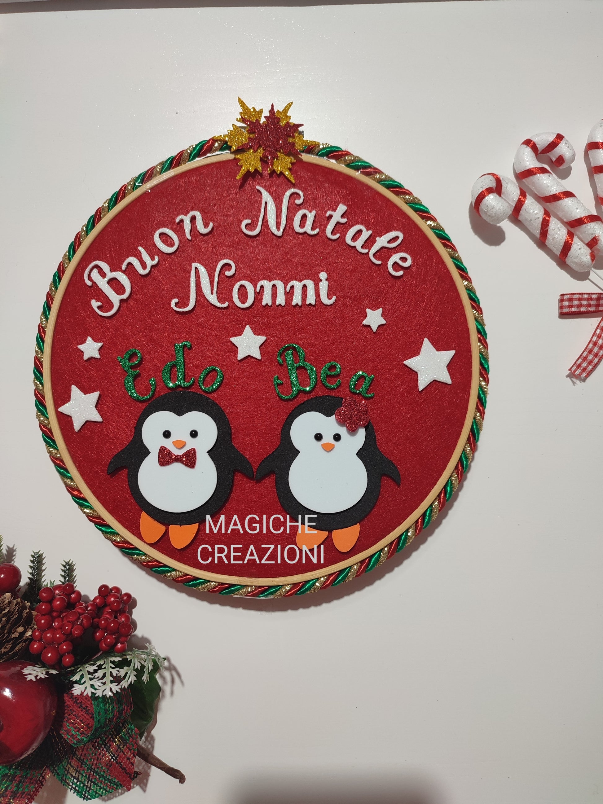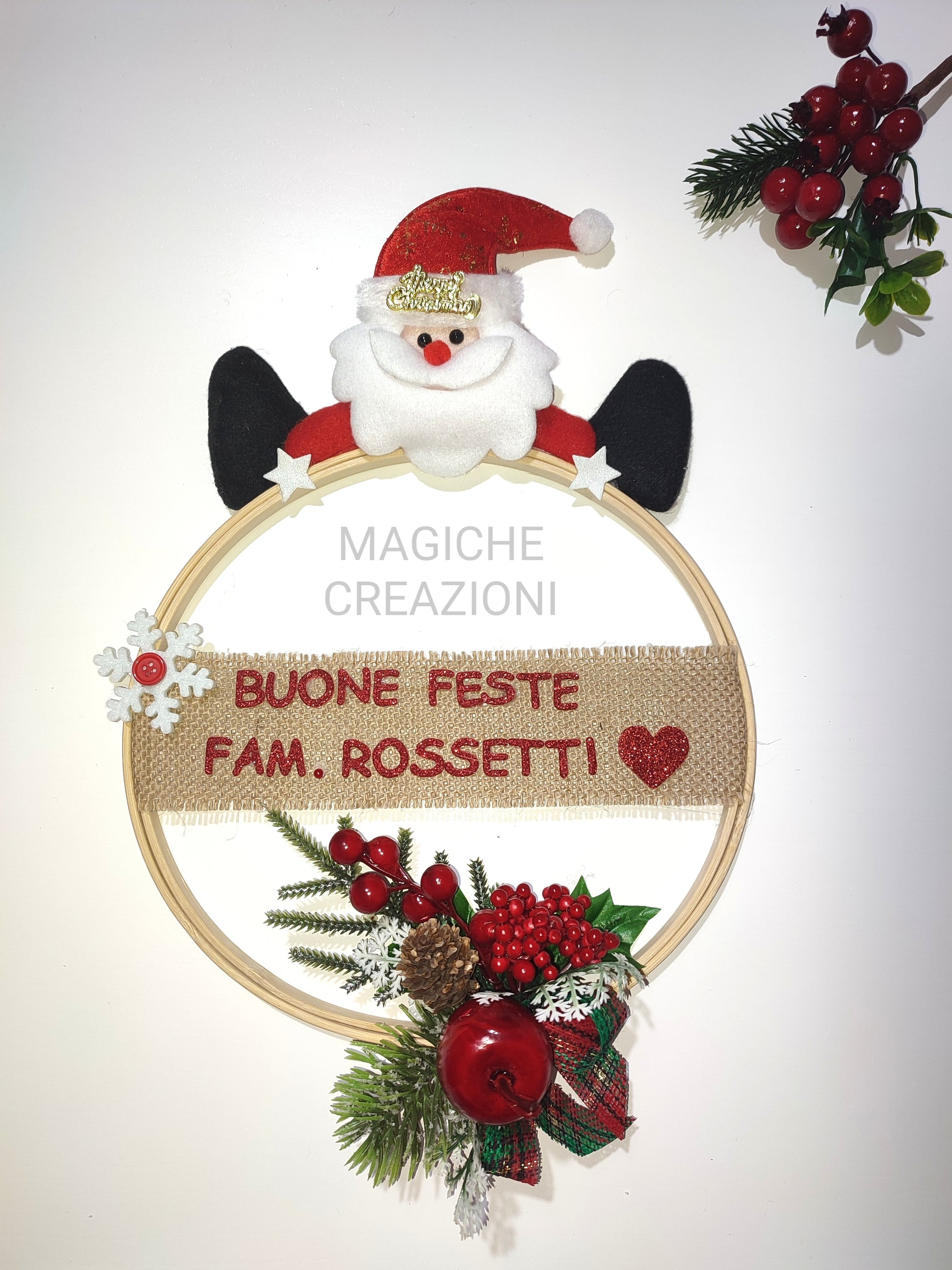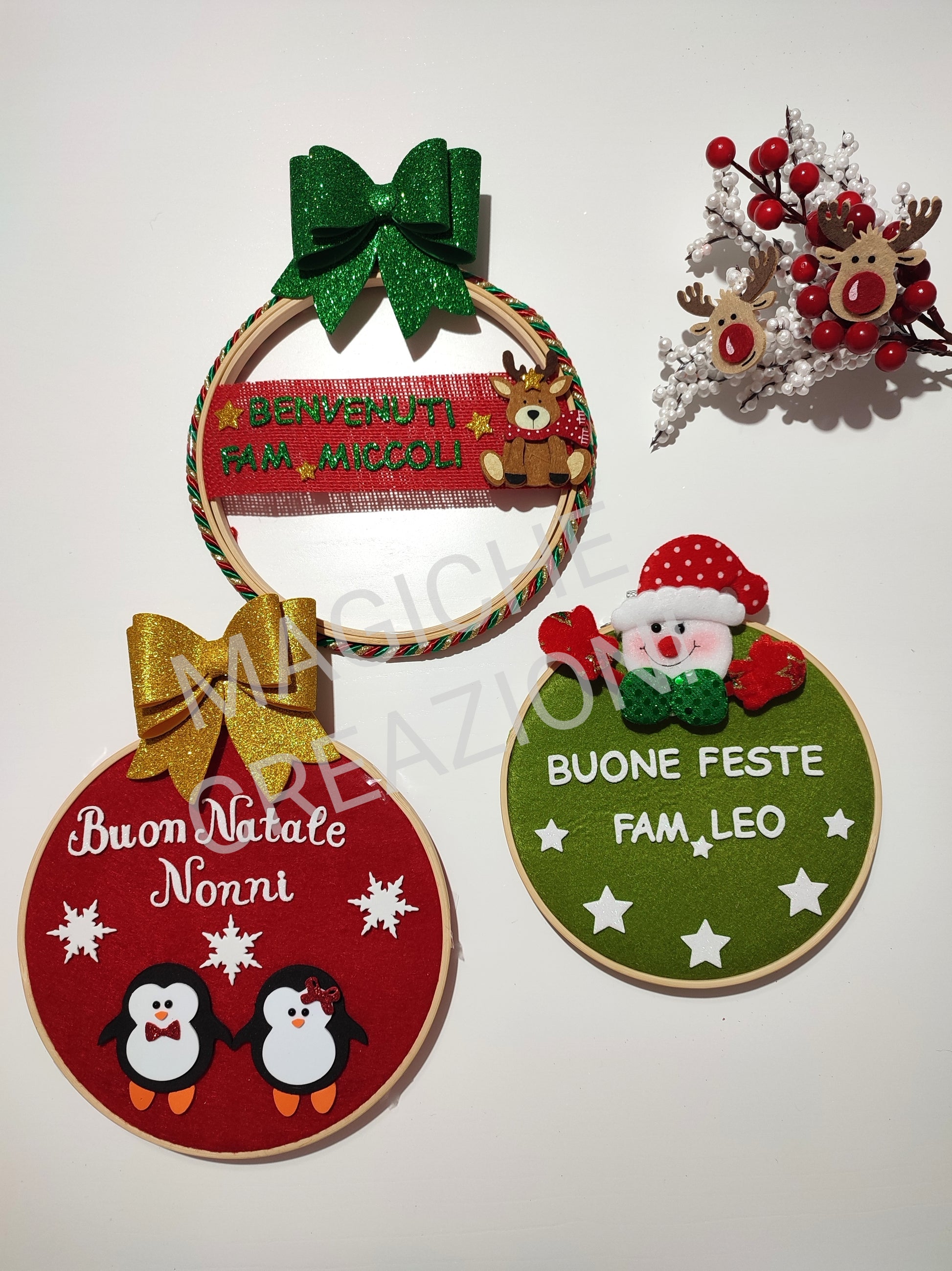 Originalissima decorazione natalizia con vari personaggi,interamente realizzata a mano, da utilizzare come fuoriporta o da interno,per abbellire un angolo della tua casa.